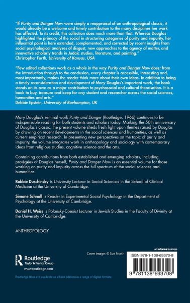 Mary Douglas's seminal Purity and Danger (Routledge, 1966) continues to be crucial reading for students and scholars. Published in the 50th anniversary year, Purity and Danger Now sets out to shed fresh light upon the themes raised by Douglas by drawing on recent developments in the social sciences and humanities, as well as current empirical research. In presenting new perspectives on the topic of purity and impurity, the volume integrates work in anthropology and sociology with contemporary ideas from religious studies, cognitive science and the arts.