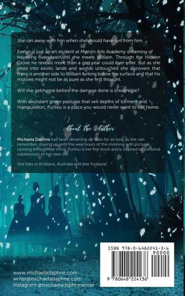She ran away with him but should have run from him. Evelyn is just an art student at Mianjin Arts Academy dreaming of travelling overseas. Until she meets William. Through the Hidden Grove he reveals more than a gap year could ever offer. But as she steps into exotic lands and worlds untouched she discovers there is another side to William lurking below the surface and that his motives might not be as pure as she first thought. Will she get home before the damage done is irreversible? With abundant green pastures that veil depths of torment and manipulation, Purlieu is a place you would never want to call home. Purlieu is the first book of the Hidden Grove series, a three-part young adult fantasy thriller.