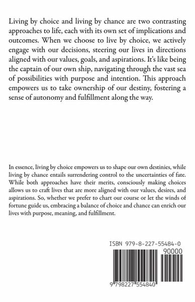 Living by choice and living by chance are two contrasting approaches to life, each with its own set of implications and outcomes. When we choose to live by choice, we actively engage with our decisions, steering our lives in directions aligned with our values, goals, and aspirations. It's like being the captain of our own ship, navigating through the vast sea of possibilities with purpose and intention. This approach empowers us to take ownership of our destiny, fostering a sense of autonomy and fulfillment along the way.