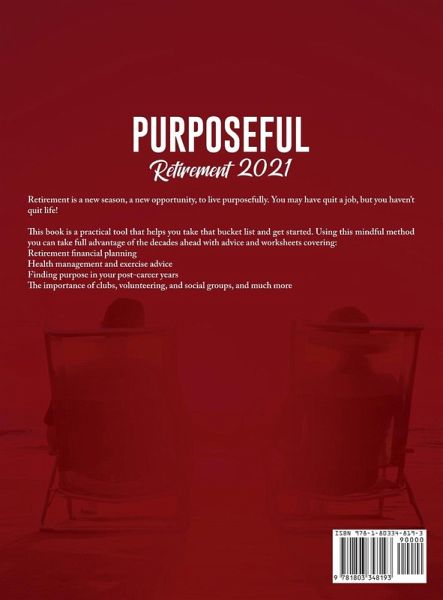 Retirement is a new season, a new opportunity, to live purposefully. You may have quit a job, but you haven't quit life! This book is a practical tool that helps you take that bucket list and get started. Using this mindful method you can take full advantage of the decades ahead with advice and worksheets covering:Retirement financial planningHealth management and exercise adviceFinding purpose in your post-career yearsThe importance of clubs, volunteering, and social groups, and much more.