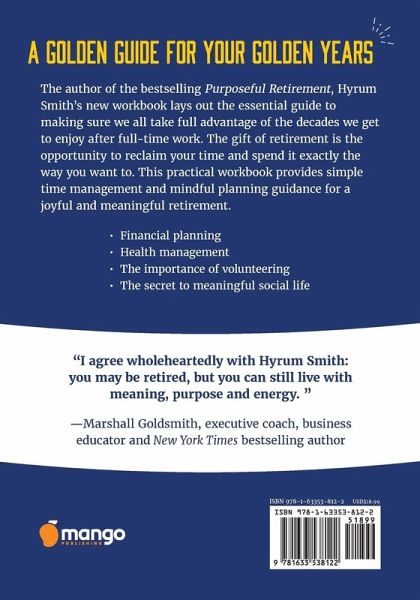 A Guide to Wealth, Health, Relationships, and Purpose During Retirement #1 New Release in Volunteer Work Includes Worksheets on Finances, Time Management, Health, Self-care, Family, Relationships, Hobbies, Volunteering and much more! Make plans for the happiest time. Retirement is a new season, a new opportunity, to live purposefully. It’s not an end. You may have quit a job, but you don’t have to quit at life. This is your time to do something meaningful. And this time you get to choose exactly what YOU want to do. Now is the time because now you actually have time. Let’s take that bucket list and get started! Time-management for retirement. Hyrum Smith, nationally-renowned "Father of Time Management" and co-creator of The Franklin Planner System, is the preeminent expert for using time wisely. The author of the bestselling Purposeful Retirement, Smith’s new book lays out what is essentially a guide to making sure we all take full advantage of the decades we get to enjoy after full-time work. Everything from money and exercise to hobbies and clubs. Hyrum Smith sheds light on what he calls the “gifts of retirement,” the opportunity to reclaim your time and spend it exactly the way you want to. His one-of-a-kind expertise and wise counsel takes you from apprehension to living life and loving it! This practical handbook covers: * Retirement financial planning * Health management and exercise advice * The importance of clubs, volunteering and social groups in maintaining friendships, relationships, and a social life once you stop going to work every day * And much more! If you've read How to Retire Happy, Wild, and Free and Hyrum Smith's Purposeful Retirement, you'll want to own this workbook and planner.