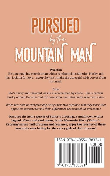 Winston He's an outgoing veterinarian with a rambunctious Siberian Husky and isn't looking for love... except he can't shake the quiet girl with curves from his mind. Guin She's curvy and reserved, easily overwhelmed by chaos... like a certain husky named Gremlin and the handsome mountain man who owns him. When fate and an energetic dog bring these two together, will they learn that opposites attract? Or will their differences be too much to overcome? Discover the heart sparks of Suitor's Crossing, a small town with a legend of love and soul mates, in the Mountain Men of Suitor's Crossing series. Full of steam and romance, enjoy the journey of these mountain men falling for the curvy girls of their dreams!
