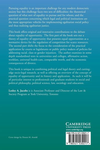 Pursuing equality is an important challenge for any modern democratic society but this challenge faces two sets of difficulties: the theoretical question of what sort of equality to pursue and for whom; and the practical question concerning which legal and political institutions are the most appropriate vehicles for implementing egalitarian social policy and thus realizing egalitarian justice. This book offers original and innovative contributions to the debate about equality of opportunity. The first part of the book sets out a theory of equality of opportunity that presents equal opportunities as a normative device for the regulation of competition for scarce resources. The second part shifts the focus to the consideration of the practical application by courts or legislatures or public policy makers of policies for addressing racial, class or gender injustices. The author examines standardized tests, affirmative action, workfare, universal health-care, comparable worth, and the economic consequences of divorce.