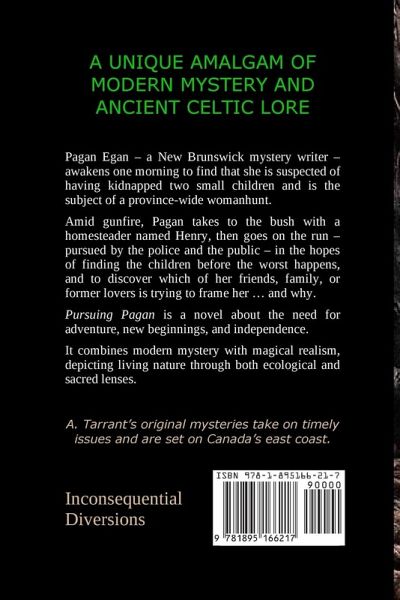 A UNIQUE BLEND OF MODERN MYSTERY WITH ANCIENT CELTIC LORE AND MAGIC Pagan Egan - a New Brunswick mystery writer - awakens one morning to find that she is suspected of having kidnapped two small children and is the subject of a province-wide womanhunt. Pagan goes on the run - pursued by the police and the public - in the hope of finding the kidnapped children before it's too late, and to discover which of her friends, family, or former lovers is trying to frame her ... and why. Pursuing Pagan is an innovative mystery novel about New Brunswick, returning home, nature in all its aspects, literature, ancient Celtic spirituality, and the need for adventure.