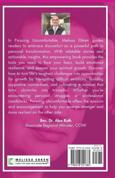 In Pursuing Uncomfortable, Melissa Ebken guides readers to embrace discomfort as a powerful path to personal transformation. With relatable stories and actionable insights, this empowering book provides the tools you need to face your fears, build emotional resilience, and deepen your spiritual growth. Discover how to turn life's toughest challenges into opportunities for growth by navigating difficult emotions, building supportive connections, and cultivating a mindset that turns obstacles into triumphs. Whether you're encountering personal struggles or professional roadblocks, Pursuing Uncomfortable offers the wisdom and encouragement to help you emerge stronger and more resilient on the other side. A pursuing uncomfortable mindset empowers you to face any adversity and grow emotional awareness. Learn how spiritual growth weaves through emotional awareness and leads to healing and personal transformation. They key to growing stronger is to face your challenges and adversity. In so doing, you increase your resilience and grow your faith and emotional well-being.