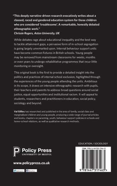 This ambitious book is the first to provide a detailed insight into the politics and practices of internal school exclusion, highlighted through the experiences of the young people attending internal behaviour support units.