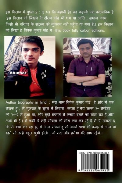 During Writing This Book No Character And No Religion & No Family Members Are Harmed. It's Only For Entertainment Purpose Written By Mr Vivek Kumar Pandey . In This Book There Is Artificial Created Story Pushpa 2 : The Rule ,It is possible that the story of Pushpa 2 : The Rule may be similar . Secret Of 750 Crore Rupees . Suspense & Action Story Written By Mr Vivek Kumar Pandey Shambhunath . Author Says I wrote this book within two days. This Book Fully Colour Edition.
