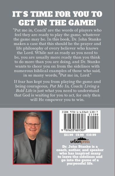 It's time for you to get in the game! "Put me in, Coach" are the words of players who feel they are ready to play the game, whatever the game may be. In this book, Dr. John Stanko makes a case that this should be the prayer and life philosophy of every believer who knows the Lord. While not as ready as you need to be, you are usually more ready than you think to do more than you are doing, and Dr. Stanko wants to cheer you on from the sidelines with numerous biblical examples of those who said, in so many words, "Put me in, Lord. "If fear has kept you from playing the game and being courageous, Put Me In, Coach: Living a Bold Life is just what you need to understand that God is waiting for you to act, for only then will He empower you to win.
