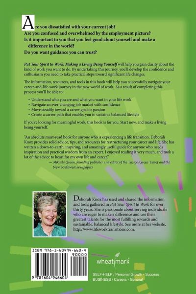 Put Your Spirit to Work: Making a Living Being Yourself will help you gain clarity about the kind of work you want to do. By undertaking this journey, you'll develop the confidence and enthusiasm you need to take practical steps toward significant life changes. The information, resources, and tools in this book will help you successfully navigate your career-and-life-work journey in the new world of work. As a result of completing this process you'll be able to: Understand who you are and what you want in your life work Navigate an ever-changing job market with confidence Move steadily toward a career goal or passion Create a career path that enables you to sustain a balanced lifestyle If you're looking for meaningful work, this book is for you. Start now, and make a living being yourself.