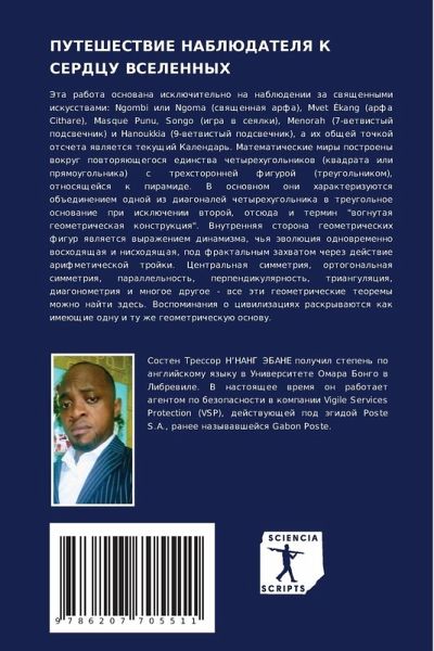 Jeta rabota osnowana isklüchitel'no na nablüdenii za swqschennymi iskusstwami: Ngombi ili Ngoma (swqschennaq arfa), Mvet Ékang (arfa Cithare), Masque Punu, Songo (igra w seqlki), Menorah (7-wetwistyj podswechnik) i Hanoukkia (9-wetwistyj podswechnik), a ih obschej tochkoj otscheta qwlqetsq tekuschij Kalendar'. Matematicheskie miry postroeny wokrug powtorqüschegosq edinstwa chetyrehugol'nikow (kwadrata ili prqmougol'nika) s trehstoronnej figuroj (treugol'nikom), otnosqschejsq k piramide. V osnownom oni harakterizuütsq ob#edineniem odnoj iz diagonalej chetyrehugol'nika w treugol'noe osnowanie pri isklüchenii wtoroj, otsüda i termin "wognutaq geometricheskaq konstrukciq". Vnutrennqq storona geometricheskih figur qwlqetsq wyrazheniem dinamizma, ch'q äwolüciq odnowremenno woshodqschaq i nishodqschaq, pod fraktal'nym zahwatom cherez dejstwie arifmeticheskoj trojki. Central'naq simmetriq, ortogonal'naq simmetriq, parallel'nost', perpendikulqrnost', triangulqciq, diagonometriq i mnogoe drugoe - wse äti geometricheskie teoremy mozhno najti zdes'. Vospominaniq o ciwilizaciqh raskrywaütsq kak imeüschie odnu i tu zhe geometricheskuü osnowu.