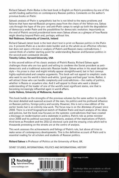"This book builds on the strengths of the previous volumes by the same author to provide the most detailed and nuanced account of the man, his politics and his profound influence on Russian politics, foreign policy and society. However, this is not a newedition of the earlier books but is an entirely new work. The focus now is on the dilemmas of power since 2008. There is a brief biographical sketch of Vladimir Putin and much analysis of his ideas and policies, but the book now focuses on the systemic contradictions that have created a blockage on modernisation and a stalemate in politics, Putin's role as Prime Minister since 2008 and his political successes and failures, analysis of the implications of Putin's third term as President and the 2011-12 electoral cycle and the ensuing crisis which led to thousands protesting on the streets This work assesses the achievements and failing of Putin's rule, but above all tries to make sense of contemporary developments. This is the definitive account of Putin and is essential reading for all scholars and students of Russian politics"--