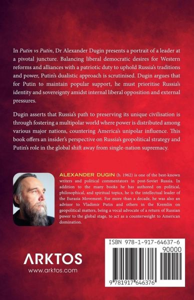 In Putin vs Putin, Dr Alexander Dugin presents a portrait of a leader at a pivotal juncture. Balancing liberal democratic desires for Western reforms and alliances with a patriotic duty to uphold Russia's traditions and power, Putin's dualistic approach is scrutinised. Dugin argues that for Putin to maintain popular support, he must prioritise Russia's identity and sovereignty amidst internal liberal opposition and external pressures. Dugin asserts that Russia's path to preserving its unique civilisation is through fostering a multipolar world where power is distributed among various major nations, countering America's unipolar influence. This book offers an insider's perspective on Russia's geopolitical strategy and Putin's role in the global shift away from single-nation supremacy.