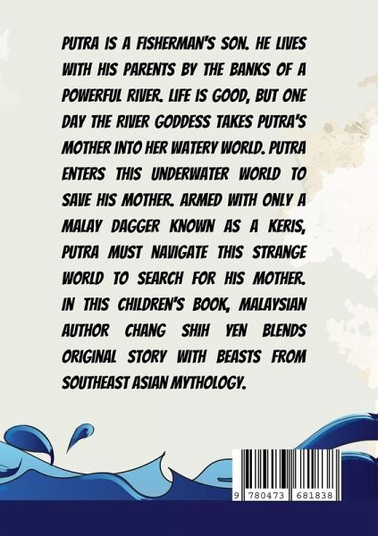 Putra is a fisherman's son. He lives with his parents by the banks of a powerful river. Life is good, but one day, the River Goddess takes Putra's mother into her watery world. Putra enters this underwater world to save his mother. Armed with only a Malay dagger known as a keris, Putra must navigate this strange world to search for his mother. In this children's book (for ages 8-12), Malaysian author Chang Shih Yen blends original story with beasts from Southeast Asian mythology.