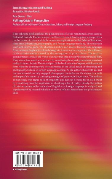 This collected book analyzes the phenomenon of crisis manifested across various historical periods. It offers unique, multifaceted, and interdisciplinary perspectives on the issues of crises and finds numerous applications in the fields of literature, linguistics, advertising, photography, and foreign language teaching. The collection is divided into two parts. The chapters in its first part analyze literature and language: from medieval England to cultural changes in America occurring under the influence of the transformation caused by the propagation of print culture. The incisive commentaries consider the works of culture that span not only literature but also film. They reveal how much we can learn by considering how past generations perceived reality in times of crisis. The second part of the book contains chapters, which examine texts related to contemporary crises expressed in the visual media of advertising and photography, but also in foreign language teaching. As the authorsshow, both ads and non-commercial, socially engaged photographs can influence the viewer in a swift and impactful manner by conveying messages of great social importance. The authors convincingly that argue both photographs and ads can be used for social benefit by visualizing even the unpleasant or shocking sides of reality. Finally, the notion of crisis experienced by students of English as a foreign language is analyzed and supplemented by research which may prove useful for researchers and practitioners alike.