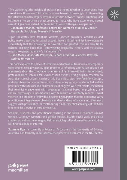 This book explores the place of feminism and uptake of trauma in contemporary work against sexual violence. Egan presents a refreshing alternative position on arguments about the co-optation or erasure of feminism within institutionalized, professionalized services for sexual assault victims. Using original research on Australian sexual assault services, Putting Feminism to Work effectively illustrates how feminist concepts and ideas have become routinized in contemporary services and enacted in daily practices with survivors and communities. The book engages with, yet resists, the notion that feminist engagement with knowledge (trauma) based in psychiatry and clinical psychology is incompatible with feminism or inevitably reduces sexual violence to a problem of individual healing. Indeed Egan argues that the productive ways practitioners integrate neurobiological understandings of trauma into their work suggests rich possibilities for reintroducing a non-essentialist biology of the body into feminist theories of sexual violence.