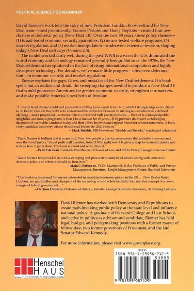 Putting Government In Its Place: The Case for a New Deal 3.0 tells the story of the House that FDR Built. Responding to the Great Depression, President Franklin Roosevelt and his New Deal team-most prominently, Frances Perkins and Harry Hopkins-created four new clusters of domestic policy. Those policy clusters-(1) broad-based economic security guarantees, (2) means-tested welfare programs, (3) across-the-board market regulation, and (4) massive market manipulation- emerged quickly during the original New Deal of 1933-1938 (Version 1.0). For the next 80 years, both Democrats and Republicans added dozens of new programs within the same four policy clusters, shaping today's New Deal writ large (Version 2.0). The model worked fairly well during the post-WWII era when the U.S. dominated the world economy and technology remained generally benign. But since the mid-1970s, the New Deal settlement has sputtered in the face of rising international competition and highly disruptive technology. For decades, we've been stuck on a plateau of little-to-no progress-at times, deterioration-in economic security and market effectiveness. Putting Government In Its Place: The Case for a New Deal 3.0 explains the major gaps, flaws, and mistakes of the New Deal settlement. Equally important, the book spells out, in outline and detail, the fundamental and sweeping changes needed to revive the New Deal. The proposed New Deal 3.0 would guarantee far greater economic security for all Americans, make our market economy dramatically more productive, and enlarge the nation's wealth. The result: America's next birth of freedom.
