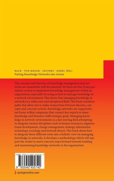 The concepts and theories of knowledge management and networks are meanwhile well documented. Yet there are few, if any, guidelines on how to implement knowledge management within an organization, especially focusing on how to manage knowledge in a network environment. This shows that managing knowledge in networks is a rather new and unexplored field. This book visualizes paths that allow one to make connections between theories, concepts and concrete actions. Knowledge networks are organizational forms within companies that connect key experts to share knowledge and therefore fulfil strategic goals. Managing knowledge in network environments is a fast-moving field attempting to integrate various disciplines such as human resources, organizational development, change management, strategy, information technology, sociology and network theory. This book shows how to integrate these different roots into a holistic view on managing knowledge in networks. It develops a methodology which will support the reader to move concrete steps forward towards building and maintaining knowledge networks in his organization.