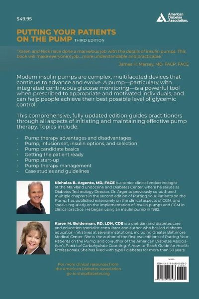 Modern insulin pumps are complex, multifaceted devices that continue to advance and evolve. A pump—particulary with integrated continuous glucose monitoring—is a powerful tool when prescribed to appropriate and motivated individuals, and can help people achieve their best possible level of glycemic control. This comprehensive, fully updated edition guides practitioners through all aspects of initiating and maintaining effective pump therapy. Topics include: • Pump therapy advantages and disadvantages • Pump, infusion set, insulin options, and selection • Pump candidate basics • Getting the patient ready • Pump start-up • Pump therapy management • Case studies and guidelines