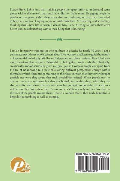 Puzzle Pieces Life is just that - giving people the opportunity to understand some pieces within themselves, that until now did not make sense. Engaging people to ponder on the parts within themselves that are confusing, or that they have tried to bury as a means of trying to get on with their lives. Yet faltering and stumbling thinking this is how life is, when it doesn't have to be. Getting to know themselves better leads to a flourishing within their being that is liberating.