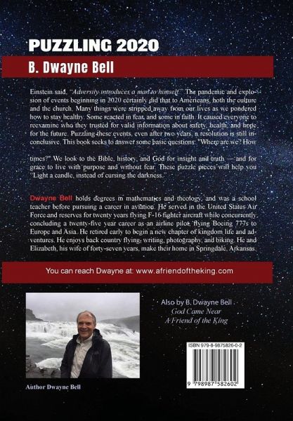 Einstein said, "Adversity introduces a man to himself." The pandemic and explosion of events beginning in 2020 certainly did that to Americans, both the culture and the church. Many things were stripped away from our lives as we pondered how to stay healthy. Some reacted in fear, and some in faith. It caused everyone to reexamine who they trusted for valid information about safety, health, and hope for the future. Puzzling these events, even after two years, a resolution is still inconclusive. This book seeks to answer some basic questions: "Where are we? How did we get here? Where do we go from here, or how do we live in these puzzling times?" We look to the Bible, history, and God for insight and truth - and for grace to live with purpose and without fear. These puzzle pieces will help you "Light a candle, instead of cursing the darkness."