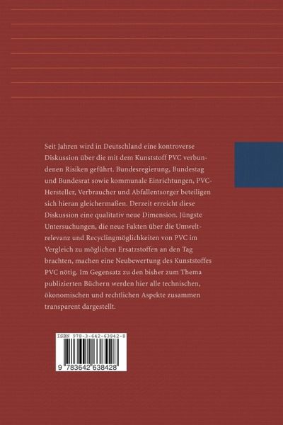 Seit Jahren wird in Deutschland eine kontroverse Diskussion über die mit dem Kunststoff PVC verbundenen Risiken geführt. Bundesregierung, Bundestag und Bundesrat sowie kommunale Einrichtungen, PVC-Hersteller, Verbraucher und Abfallentsorger beteiligen sich hieran gleichermaßen. Derzeit erreicht diese Diskussion eine qualitativ neue Dimension. Jüngste Untersuchungen, die neue Fakten über die Umweltrelevanz und Recyclingmöglichkeiten von PVC im Vergleich zu möglichen Ersatzstoffen an den Tag brachten, machen eine Neubewertung des Kunststoffes PVC nötig. Im Gegensatz zu den bisher zum Thema publizierten Büchern werden hier alle technischen, ökonomischen und rechtlichen Aspekte zusammen transparent dargestellt.