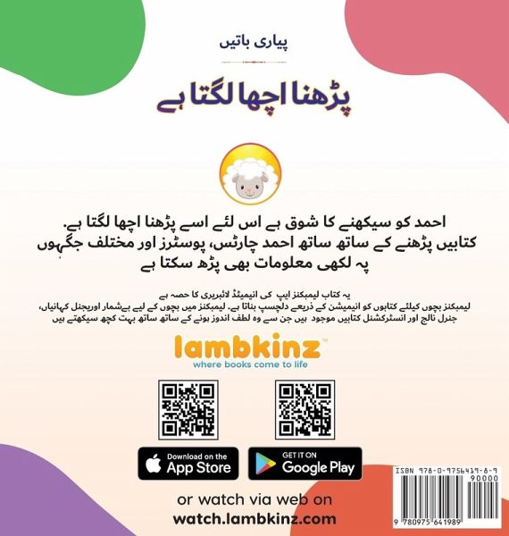 This book inspires kids to read like Ahmed who loves to read to read books, packaging and even birthday card. This book encourages and promotes the habit of reading. This book is a part of a five-book series "Pyari Batein" by lambkinz