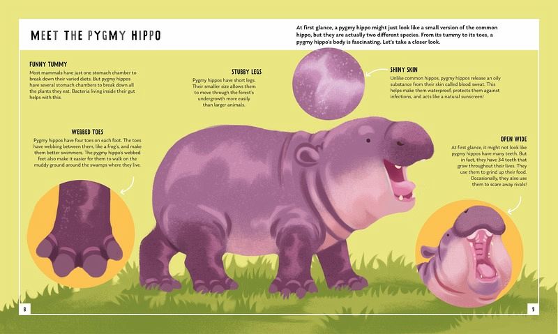 An illustrated guide to the adorable pygmy hippo written by Dr. Fiona Sach.