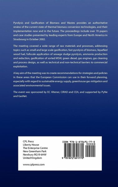 Pyrolysis and Gasification of Biomass and Waste provides an authoritative review of thermal biomass conversion technologies and their implementation now and in the future. These proceedings include over 70 papers and case studies presented by leading experts from Europe and North America in Strasbourg in October 2002. Covering both technical issues and commercial opportunities, the papers include numerous diagrams, tables and figures presenting up-to-date details of how the latest pyrolysis and gasification technology is being put into practice. The meeting covered a wide range of raw materials and processes, addressing topics such as: small and large scale gasification; fast pyrolysis of biomass; liquefied wood fuel; full-scale application of sewage sludge pyrolysis; ammonia production and reduction; gasification of sorted MSW; green diesel; gas engines; gas cleaning and process design; technical and non-technical barriers to commercial exploitation. A key aim of the Strasbourg meeting was to create recommendations for strategies and policies in these areas, which the European Commission can use in its forward planning, especially with regard to sustainable energy supply, greenhouse gas mitigation and associated environmental issues. This book is an invaluable reference source for anyone concerned with these issues, and essential reading for researchers, engineers, waste managers and other professionals involved with the utilisation of green fuels and feedstocks, gasification and the contemporary biomass industry.