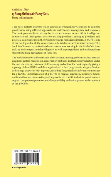 This book collects chapters which discuss interdisciplinary solutions to complex problems by using different approaches in order to save money, time and resources. The book presents the results on the recent advancements in artificial intelligence, computational intelligence, decision-making problems, emerging problems and practical achievements in the broad knowledge management field. q-ROFS is one of the hot topics for all the researchers, industrialists as well as academicians. This book is of interest to professionals and researchers working in the field of decision making and computational intelligence, as well as postgraduate and undergraduate students studying applications of fuzzy sets.
