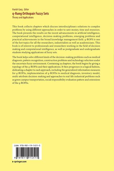 The book helps solve different kinds of the decision-making problems such as medical diagnosis, pattern recognition, construction problems and technology selection under the uncertain fuzzy environment. Containing 19 chapters, the book begins by giving a topology of the q-ROFSs and their applications. It then progresses in a logical fashion, dedicating a chapter to each approach, including the generalized information measures for q-ROFSs, implementation of q-ROFSs to medical diagnosis, inventory model, multi-attribute decision-making and approaches to real-life industrial problems such as green campus transportation, social responsibility evaluation pattern and extensions of the q-ROFSs.