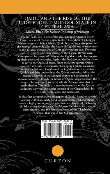 Qaidu (1236-1301), one of the great rebels in the history of the Mongol Empire, was the grandson of Ogedei, the son Genghis Khan had chosen to be his heir. This boof recounts the dynastic convolutions and power struggle leading up to his rebellion and subsequent events.