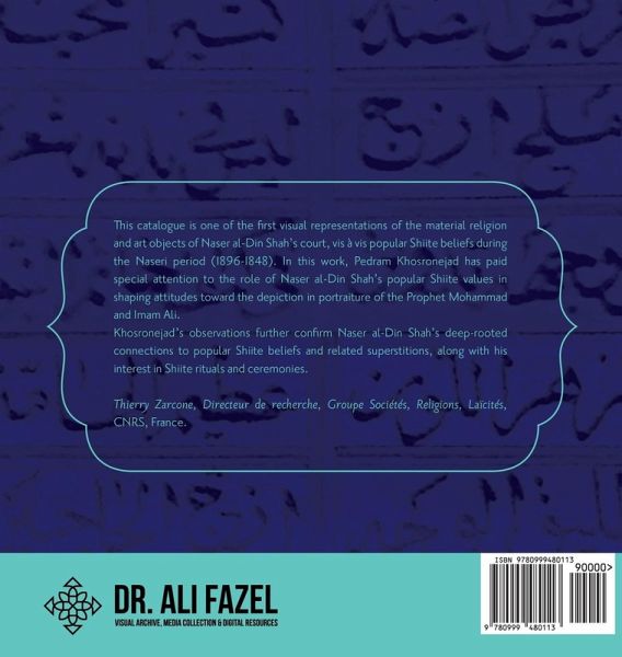 This catalogue is one of the first visual representations of the material religion and art objects of Naser al-Din Shah’s court, vis à vis popular Shiite beliefs during the Naseri period (1848-1896). In this work, Pedram Khosronejad has paid special attention to the role of Naser al-Din Shah’s popular Shiite values in shaping attitudes toward the depiction in portraiture of the Prophet Mohammad and Imam Ali. Khosronejad’s observations further confirm Naser al-Din Shah’s deep-rooted connections to popular Shiite beliefs and related superstitions, along with his interest in Shiite rituals and ceremonies. Thierry Zarcone, Directeur de recherche, Groupe Sociétés, Religions, Laïcités, CNRS, France.