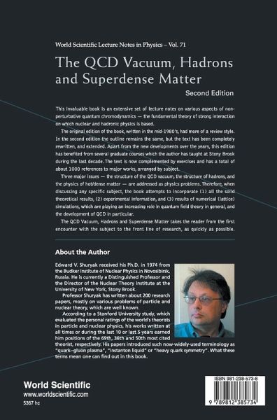 This invaluable book is an extensive set of lecture notes on various aspects of non-perturbative quantum chromodynamics--the fundamental theory of strong interaction on which nuclear and hadronic physics is based. The original edition of the book, written in the mid-1980's, had more of a review style. In the second edition the outline remains the same, but the text has been completely rewritten, and extended. Apart from the new developments over the years, this edition has benefited from several graduate courses which the author has taught at Stony Brook during the last decade. The text is now complemented by exercises and has a total of about 1000 references to major works, arranged by subject. Three major issues--the structure of the QCD vacuum, the structure of hadrons, and the physics of hot/dense matter--are addressed as "physics problems. Therefore, when discussing any specific subject, the book attempts to incorporate (1) all the solid theoretical results, (2) experimental information, and (3) results of numerical (lattice) simulations, which are playing an increasing role in quantum field theory in general, and the development of QCD in particular. "The QCD Vaccum, Hadrons and Superdense Matter takes the reader from the first encounter with the subject to the front line of research, as quickly as possible.