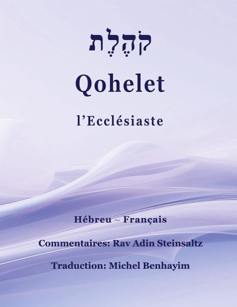 "Vanité des Vanités, a dit Qohelet, tout est vanité" Le livre de Qohelet (l'Ecclésiaste) est un livre d'éthique juive qui est attribué au roi Chlomo (Salomon). Au sujet de ce livre, les Sages du Talmud ont dit: "Son commencement contient des Paroles de Tora et sa fin contient des Paroles de Tora" (Chabbat 30b). On peut résumer la pensée de Qohelet selon les paroles du prophète (Michée 6, 8): "Il t'a été dit, ô mortel, ce qui est bien et ce que l'ÉTERNEL attend de toi: seulement d'aller dans les voies de la justice, d'aimer faire le bien et de marcher avec humilité en Présence de ton ELOKIM". Rav Adin Steinsaltz