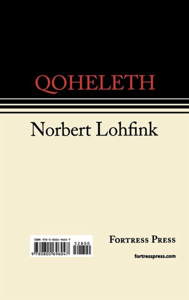 This new addition to the successful Continental Commentary series is a significant and fresh treatment of Qoheleth (or Ecclesiastes). A famed professor presents a startlingly new translation of this often perplexing book of the Old Testament. Lohfink also argues for a rather different interpretation of the book than one finds elsewhere. Rather than reading the book's perspective as depressing, lost, or cynical, he highlights the elements of joy and balance. The volume includes introduction, new translation, commentary, parallel passages, bibliography, and indexes.