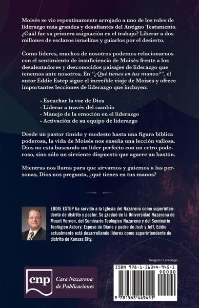 Moisés se vio repentinamente arrojado a uno de los roles de liderazgo más grandes y desafi antes del Antiguo Testamento. ¿Cuál fue su primera asignación en el trabajo? Liberar a dos millones de esclavos israelitas y guiarlos por el desierto. Como líderes, muchos de nosotros podemos relacionarnos con el sentimiento de insufi ciencia de Moisés frente a los desalentadores y desconocidos paisajes de liderazgo que tenemos ante nosotros. En "¿Qué tienes en tus manos?", el autor Eddie Estep sigue el increíble viaje de Moisés y ofrece importantes lecciones de liderazgo que incluyen: ¿ Escuchar la voz de Dios ¿ Liderar a través del cambio ¿ Manejo de la emoción en el liderazgo ¿ Activación de su equipo de liderazgo Desde un pastor tímido y modesto hasta una fi gura bíblica poderosa, la vida de Moisés nos enseña una lección valiosa. Dios no está buscando un líder perfecto con un cetro poderoso, sino sólo un sirviente dispuesto que agarre un bastón. Mientras nos llama para que sirvamos y guiemos a las personas, Dios nos pregunta, ¿qué tienes en tus manos?