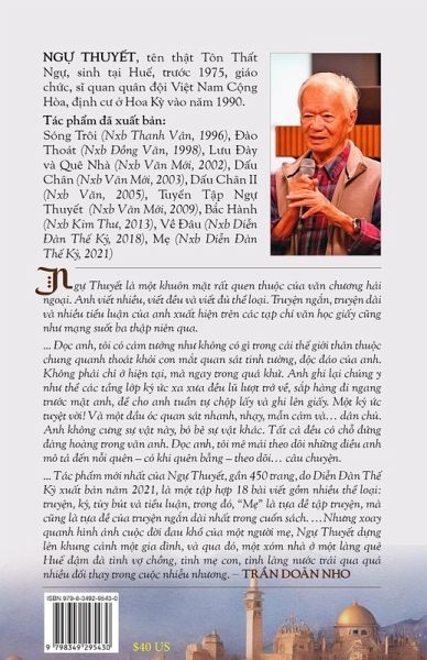 Qua Trung ¿ông Ti¿u thuy¿t Tác gi¿: Ng¿ Thuy¿t Ng¿ Thuy¿t là m¿t khuôn m¿t r¿t quen thu¿c c¿a v¿n ch¿¿ng h¿i ngöi. Anh vi¿t nhi¿u, vi¿t ¿¿u và vi¿t ¿¿ th¿ löi. Truy¿n ng¿n, truy¿n dài và nhi¿u ti¿u lu¿n c¿a anh xu¿t hi¿n trên các t¿p chí v¿n h¿c gi¿y c¿ng nh¿ m¿ng su¿t ba th¿p niên qua. ... ¿¿c anh, tôi có c¿m t¿¿ng nh¿ không có gì trong cái th¿ gi¿i thân thu¿c chung quanh thoát kh¿i con m¿t quan sát tinh t¿¿ng, ¿¿c ¿áo c¿a anh. Không ph¿i ch¿ ¿ hi¿n t¿i, mà ngay trong quá kh¿. Anh ghi l¿i chúng y nh¿ th¿ các t¿ng l¿p ký ¿c xa x¿a ¿¿u l¿ l¿¿t tr¿ v¿, s¿p hàng ¿i ngang tr¿¿c m¿t anh, ¿¿ cho anh tu¿n t¿ ch¿p l¿y và ghi lên gi¿y. M¿t ký ¿c tuy¿t v¿i! Và m¿t ¿¿u óc quan sát nhanh, nh¿y, m¿n c¿m và... dân ch¿. Anh không c¿ng s¿ v¿t này, b¿ bê s¿ v¿t khác. T¿t c¿ ¿¿u có ch¿ ¿¿ng ¿àng hoàng trong v¿n anh. ¿¿c anh, tôi mê m¿i theo dõi nh¿ng ¿i¿u anh mô t¿ ¿¿n n¿i quên - có khi quên b¿ng - theo dõi... câu chuy¿n. Tr¿n Doãn Nho