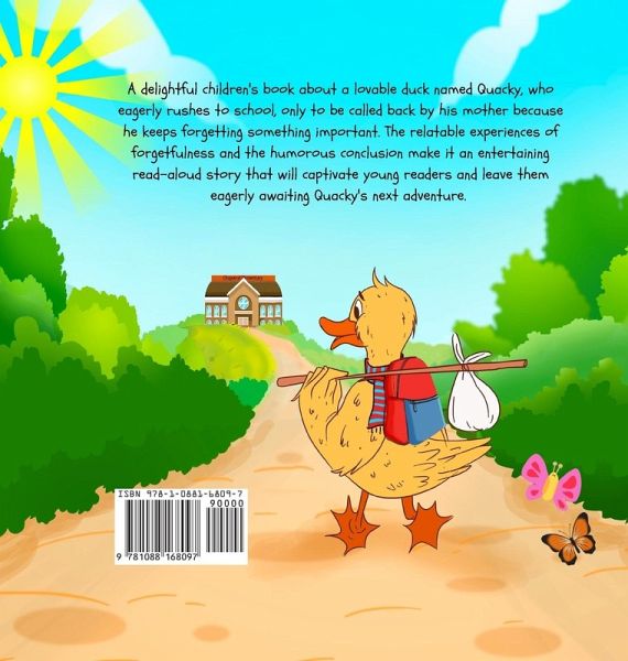 "Quacky Goes to School" is a delightful children's book about a lovable duck named Quacky, who eagerly rushes to school, only to be called back by his mother because he keeps forgetting something important. The repetitive nature of Quacky's forgetfulness adds a touch of humor to the story, engaging children and keeping them curious about what he'll forget next. The relatable experiences of forgetfulness and the humorous conclusion make it an entertaining read-aloud story that will captivate young readers and leave them eagerly awaiting Quacky's next adventure.