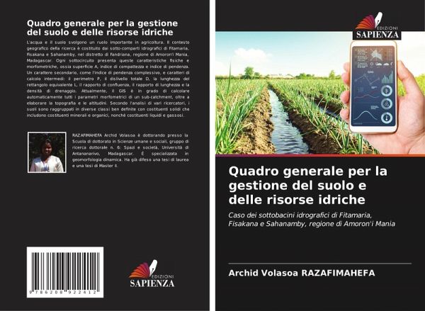L'acqua e il suolo svolgono un ruolo importante in agricoltura. Il contesto geografico della ricerca è costituito dai sotto-comparti idrografici di Fitamaria, Fisakana e Sahanamby, nel distretto di Fandriana, regione di Amoron'i Mania, Madagascar. Ogni sottocircuito presenta queste caratteristiche fisiche e morfometriche, ossia superficie A, indice di compattezza e indice di pendenza. Un carattere secondario, come l'indice di pendenza complessivo, e caratteri di calcolo intermedi: il perimetro P, il dislivello totale D, la lunghezza del rettangolo equivalente L, il rapporto di confluenza, il rapporto di lunghezza e la densità di drenaggio. Attualmente, il GIS è in grado di calcolare automaticamente tutti i parametri morfometrici di un sub-catchment, oltre a elaborare la topografia e le altitudini. Secondo l'analisi di vari ricercatori, i suoli sono raggruppati in diverse classi ben definite con costituenti solidi che includono costituenti minerali e organici, nonché costituenti liquidi e gassosi.