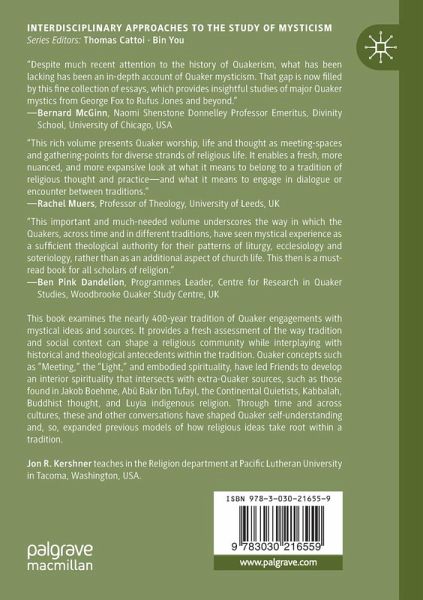 This book examines the nearly 400-year tradition of Quaker engagements with mystical ideas and sources. It provides a fresh assessment of the way tradition and social context can shape a religious community while interplaying with historical and theological antecedents within the tradition. Quaker concepts such as "Meeting," the "Light," and embodied spirituality, have led Friends to develop an interior spirituality that intersects with extra-Quaker sources, such as those found in Jakob Boehme, Abu Bakr ibn Tufayl, the Continental Quietists, Kabbalah, Buddhist thought, and Luyia indigenous religion. Through time and across cultures, these and other conversations have shaped Quaker self-understanding and, so, expanded previous models of how religious ideas take root within a tradition. The thinkers engaged in this globally-focused, interdisciplinary volume include George Fox, James Nayler, Robert Barclay, Elizabeth Ashbridge, John Woolman, Hannah Whitall Smith, Rufus Jones, Inazo Nitobe, Howard Thurman, and Gideon W. H. Mweresa, among others.