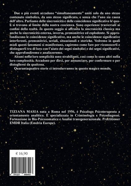 Due o più eventi accadono "simultaneamente" uniti solo da uno stesso contenuto simbolico, da uno stesso significato, e senza che l'uno sia causa dell'altro. Parliamo delle sincronicità e delle coincidenze significative le quali si trovano al limite della nostra coscienza. Sono esperienze trasversali ai confini della realtà. In questo saggio si affronta la sincronicità classica ma anche la sincronicità esterna, inversa, premonitrice ed esplodente. Si approfondiscono le coincidenze significative, ma anche le coincidenze significative interferenti, premonitrici, seriali, situazionali e storiche. Vedremo in quali modi questi fenomeni si manifestano, capiremo come fare per riconoscerli e distinguerli tra di loro con l'aiuto dei segni simbolici e dei segni significativi, che approfondiremo e analizzeremo. Alcuni nella loro semplicità sono strabilianti, così come lo sono altri nella loro complessità. Accadono per dirci, per annunciare, per confermare o per distoglierci da qualcosa. Quarantaquattro storie ci introdurranno in questo magico mondo.