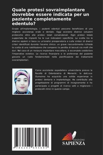 Grazie all'implantologia, i pazienti edentuli possono beneficiare di una migliore assistenza orale e dentale. Oggi esistono diverse soluzioni protesiche oltre alle protesi totali convenzionali. Ogni protesi totale supportata da impianti ha le sue indicazioni specifiche. La scelta tra le diverse opzioni si basa su un'analisi preoperatoria e sulla sintesi di diversi criteri identificati durante l'esame clinico: un grave riassorbimento richiede la scelta di una riabilitazione che compensi la perdita di tessuti sia molli che duri. Nel caso di un restauro implantare mascellare, è essenziale soddisfare l'imperativo estetico. Le risorse finanziarie e le preferenze del paziente giocano un ruolo fondamentale nella pianificazione dei trattamenti sovraimplantari.