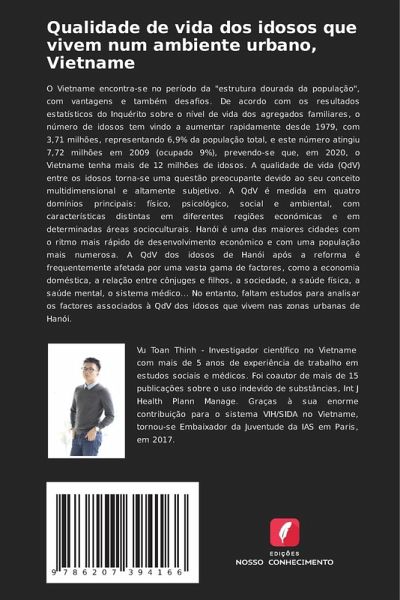 O Vietname encontra-se no período da "estrutura dourada da população", com vantagens e também desafios. De acordo com os resultados estatísticos do Inquérito sobre o nível de vida dos agregados familiares, o número de idosos tem vindo a aumentar rapidamente desde 1979, com 3,71 milhões, representando 6,9% da população total, e este número atingiu 7,72 milhões em 2009 (ocupado 9%), prevendo-se que, em 2020, o Vietname tenha mais de 12 milhões de idosos. A qualidade de vida (QdV) entre os idosos torna-se uma questão preocupante devido ao seu conceito multidimensional e altamente subjetivo. A QdV é medida em quatro domínios principais: físico, psicológico, social e ambiental, com características distintas em diferentes regiões económicas e em determinadas áreas socioculturais. Hanói é uma das maiores cidades com o ritmo mais rápido de desenvolvimento económico e com uma população mais numerosa. A QdV dos idosos de Hanói após a reforma é frequentemente afetada por uma vasta gama de factores, como a economia doméstica, a relação entre cônjuges e filhos, a sociedade, a saúde física, a saúde mental, o sistema médico... No entanto, faltam estudos para analisar os factores associados à QdV dos idosos que vivem nas zonas urbanas de Hanói.