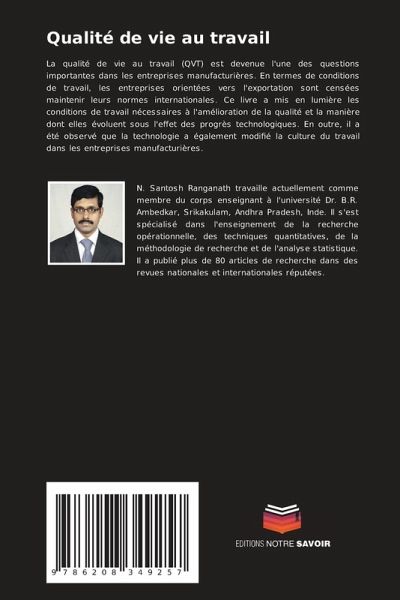 La qualité de vie au travail (QVT) est devenue l'une des questions importantes dans les entreprises manufacturières. En termes de conditions de travail, les entreprises orientées vers l'exportation sont censées maintenir leurs normes internationales. Ce livre a mis en lumière les conditions de travail nécessaires à l'amélioration de la qualité et la manière dont elles évoluent sous l'effet des progrès technologiques. En outre, il a été observé que la technologie a également modifié la culture du travail dans les entreprises manufacturières.