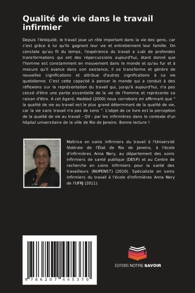 Depuis l'Antiquité, le travail joue un rôle important dans la vie des gens, car c'est grâce à lui qu'ils gagnent leur vie et entretiennent leur famille. On constate qu'au fil du temps, l'expérience du travail a subi de profondes transformations qui ont des répercussions aujourd'hui, étant donné que l'homme est constamment en mouvement dans le monde et qu'au fur et à mesure qu'il avance dans son existence, il se transforme et génère de nouvelles significations et attribue d'autres significations à sa vie quotidienne. C'est cette capacité à penser le monde qui a conduit à des réflexions sur la représentation du travail qui, jusqu'à aujourd'hui, n'a pas cessé d'être une partie essentielle de la vie de l'homme et représente sa raison d'être. A cet égard, Haddad (2000) nous corrobore en affirmant que " la qualité de vie au travail est le plus grand déterminant de la qualité de vie, car la vie sans travail n'a pas de sens ". L'objet de ce livre est la perception de la qualité de vie au travail - QV - par les infirmières dans le contexte d'un hôpital universitaire de la ville de Rio de Janeiro. Bonne lecture !