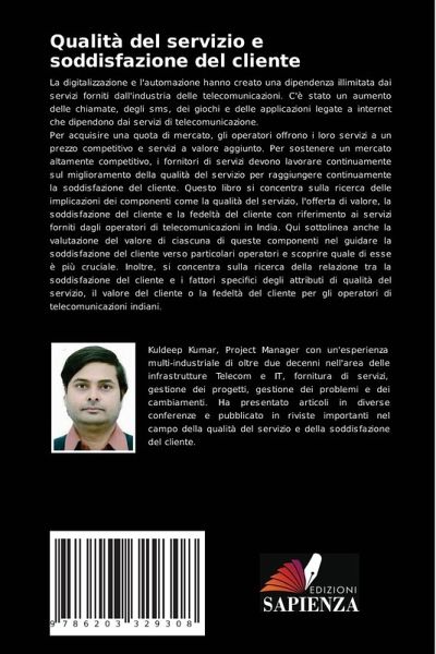 La digitalizzazione e l'automazione hanno creato una dipendenza illimitata dai servizi forniti dall'industria delle telecomunicazioni. C'è stato un aumento delle chiamate, degli sms, dei giochi e delle applicazioni legate a internet che dipendono dai servizi di telecomunicazione.Per acquisire una quota di mercato, gli operatori offrono i loro servizi a un prezzo competitivo e servizi a valore aggiunto. Per sostenere un mercato altamente competitivo, i fornitori di servizi devono lavorare continuamente sul miglioramento della qualità del servizio per raggiungere continuamente la soddisfazione del cliente. Questo libro si concentra sulla ricerca delle implicazioni dei componenti come la qualità del servizio, l'offerta di valore, la soddisfazione del cliente e la fedeltà del cliente con riferimento ai servizi forniti dagli operatori di telecomunicazioni in India. Qui sottolinea anche la valutazione del valore di ciascuna di queste componenti nel guidare la soddisfazione del cliente verso particolari operatori e scoprire quale di esse è più cruciale. Inoltre, si concentra sulla ricerca della relazione tra la soddisfazione del cliente e i fattori specifici degli attributi di qualità del servizio, il valore del cliente o la fedeltà del cliente per gli operatori di telecomunicazioni indiani.