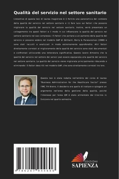 L'obiettivo di questa tesi di laurea magistrale è i) fornire una panoramica del contesto della qualità del servizio nel settore sanitario e ii) fare luce sui fattori che possono migliorare la qualità del servizio nel settore sanitario. Inoltre, verrà presentato un collegamento tra questi fattori e il modo in cui influenzano la qualità del servizio nel settore sanitario nel suo complesso. I 5 fattori che portano a un aumento della qualità del servizio si possono vedere nel modello GAP di Zeithaml, Berry & Parasuraman (1988) e sono stati raccolti e analizzati in modo estremamente approfondito. Altri fattori direttamente correlati al miglioramento della qualità del servizio sono stati documentati e confrontati utilizzando una letteratura significativa. Questo lavoro dimostra che la qualità del servizio nel settore dei servizi può essere equiparata alla qualità del servizio nel settore sanitario. La qualità del servizio viene migliorata principalmente riducendo o eliminando i 5 fattori descritti nel modello GAP, che sono strettamente correlati tra loro.