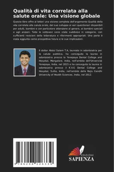 Questo libro offre ai lettori una visione completa dell'argomento Qualità della vita correlata alla salute orale, dal suo sviluppo ai vari questionari disponibili per adulti, bambini e con particolare attenzione al genere, ai bambini speciali e agli anziani. Tutte le sottovoci sono state suddivise in categorie, con sufficienti revisioni della letteratura e riferimenti appropriati. Una parte è stata aggiunta come prospettiva futura e le sue implicazioni.