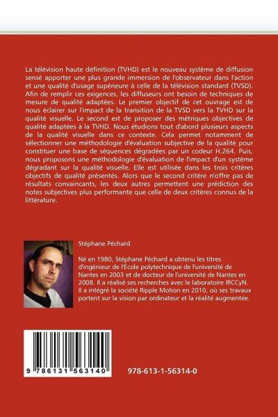 La télévision haute définition (TVHD) est le nouveau système de diffusion sensé apporter une plus grande immersion de l'observateur dans l'action et une qualité d'usage supérieure à celle de la télévision standard (TVSD). Afin de remplir ces exigences, les diffuseurs ont besoin de techniques de mesure de qualité adaptées. Le premier objectif de cet ouvrage est de nous éclairer sur l'impact de la transition de la TVSD vers la TVHD sur la qualité visuelle. Le second est de proposer des métriques objectives de qualité adaptées à la TVHD. Nous étudions tout d'abord plusieurs aspects de la qualité visuelle dans ce contexte. Cela permet notamment de sélectionner une méthodologie d'évaluation subjective de la qualité pour constituer une base de séquences dégradées par un codeur H.264. Puis, nous proposons une méthodologie d'évaluation de l'impact d'un système dégradant sur la qualité visuelle. Elle est utilisée dans les trois critères objectifs de qualité présentés. Alors que le second critère n'offre pas de résultats convaincants, les deux autres permettent une prédiction des notes subjectives plus performante que celle de deux critères connus de la littérature.