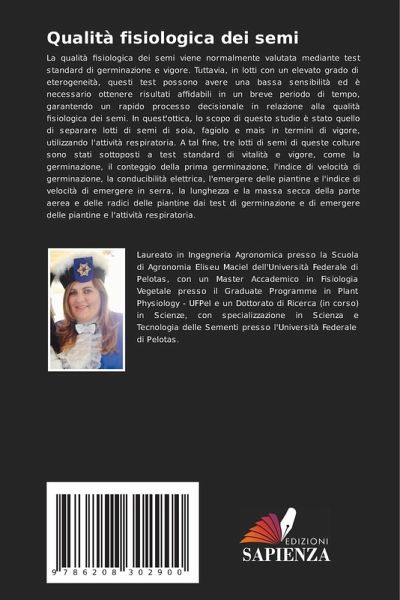 La qualità fisiologica dei semi viene normalmente valutata mediante test standard di germinazione e vigore. Tuttavia, in lotti con un elevato grado di eterogeneità, questi test possono avere una bassa sensibilità ed è necessario ottenere risultati affidabili in un breve periodo di tempo, garantendo un rapido processo decisionale in relazione alla qualità fisiologica dei semi. In quest'ottica, lo scopo di questo studio è stato quello di separare lotti di semi di soia, fagiolo e mais in termini di vigore, utilizzando l'attività respiratoria. A tal fine, tre lotti di semi di queste colture sono stati sottoposti a test standard di vitalità e vigore, come la germinazione, il conteggio della prima germinazione, l'indice di velocità di germinazione, la conducibilità elettrica, l'emergere delle piantine e l'indice di velocità di emergere in serra, la lunghezza e la massa secca della parte aerea e delle radici delle piantine dai test di germinazione e di emergere delle piantine e l'attività respiratoria.